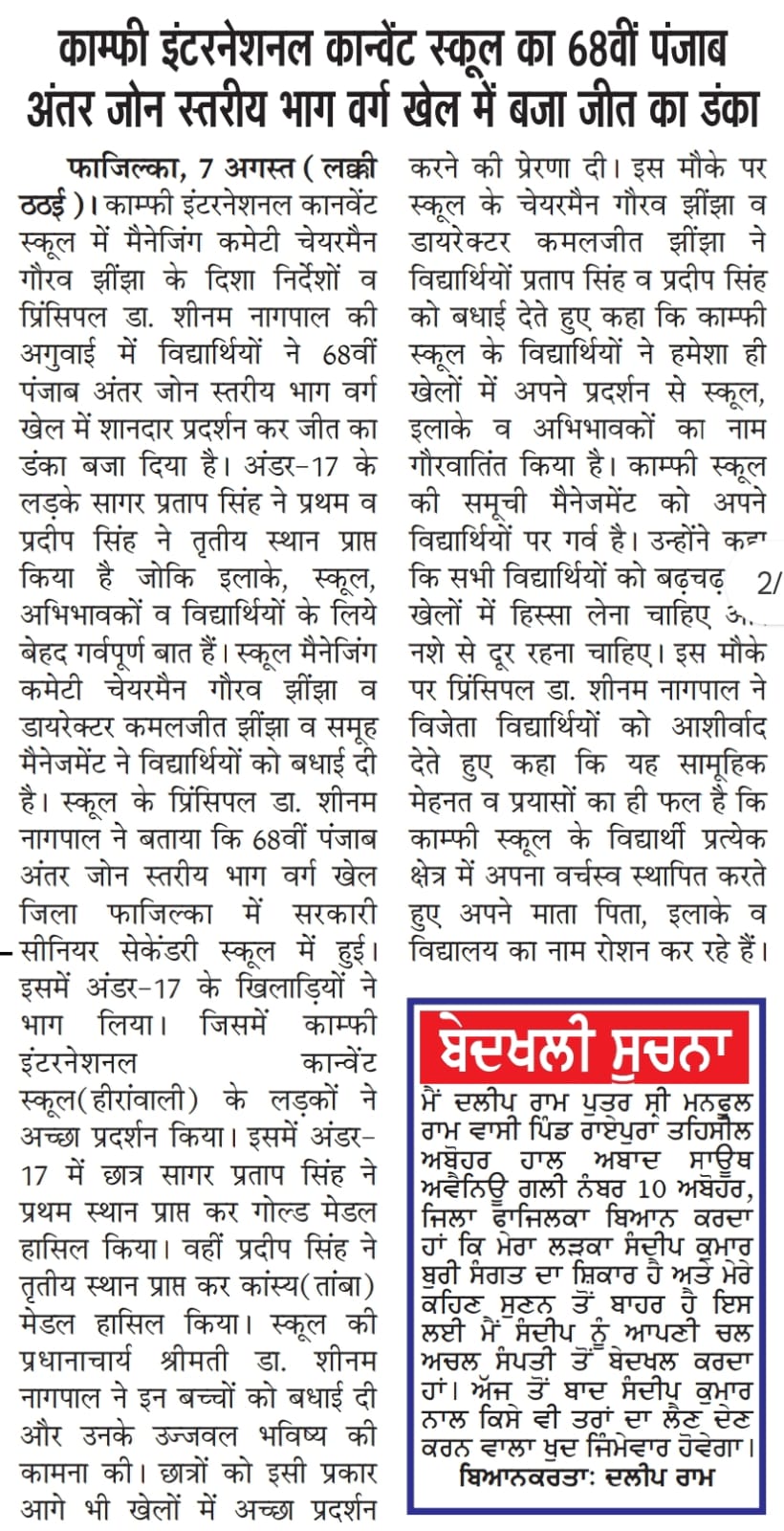 DISTT FAZILKA 152123 (PUNJAB)
