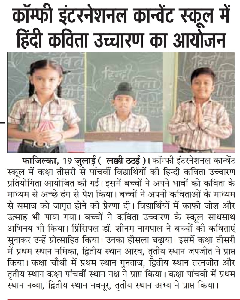COMFY INTERNATIONAL CONVENT SCHOOL FAZILKA